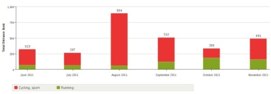 我的平均步伐由之前的11 ~ 12(min/km), 到上個月9 ~ 10, 本月大多都可以到8 ~ 9。很難想像以前可以跑到4 ~ 5, 不過, 以前都跑很大步, 現在年紀大了, 不太可能跑那麼快, 為了可以跑的長久, 我的目標是6~7, 大約一個小時跑9~10km, 還有很長的路要走。